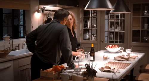 Most kitchens in Nancy Meyers movies have a large central island. We realize that, depending on the size of your room, you can’t just plop in a huge island, but there are some ways to emulate the style.