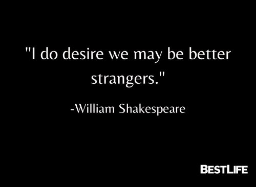 - “I do desire we may be better strangers.” — William Shakespeare, As You Like It