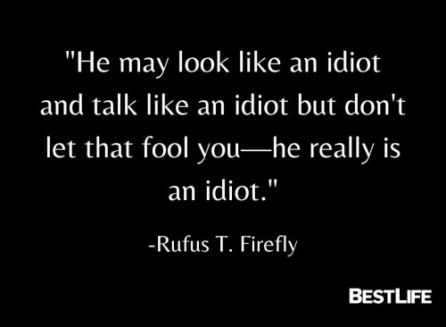 - “He may look like an idiot and talk like an idiot but don’t let that fool you—he really is an idiot.” — Rufus T. Firefly, Duck Soup