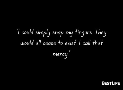 “I could simply snap my fingers. They would all cease to exist. I call that mercy.”