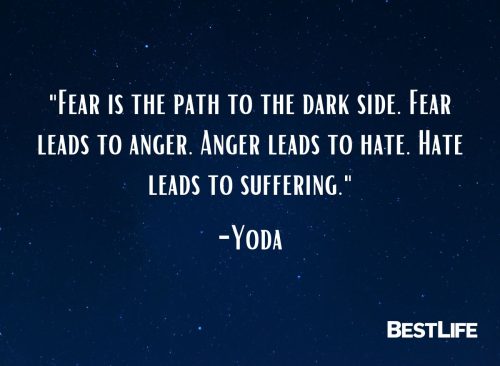 - “Fear is the path to the dark side. Fear leads to anger. Anger leads to hate. Hate leads to suffering.”