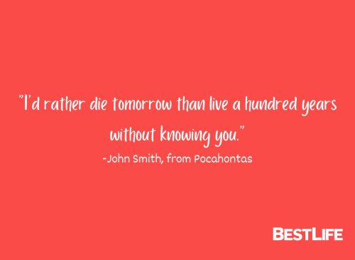 - “I’d rather die tomorrow than live a hundred years without knowing you.” —John Smith, from Pocahontas
