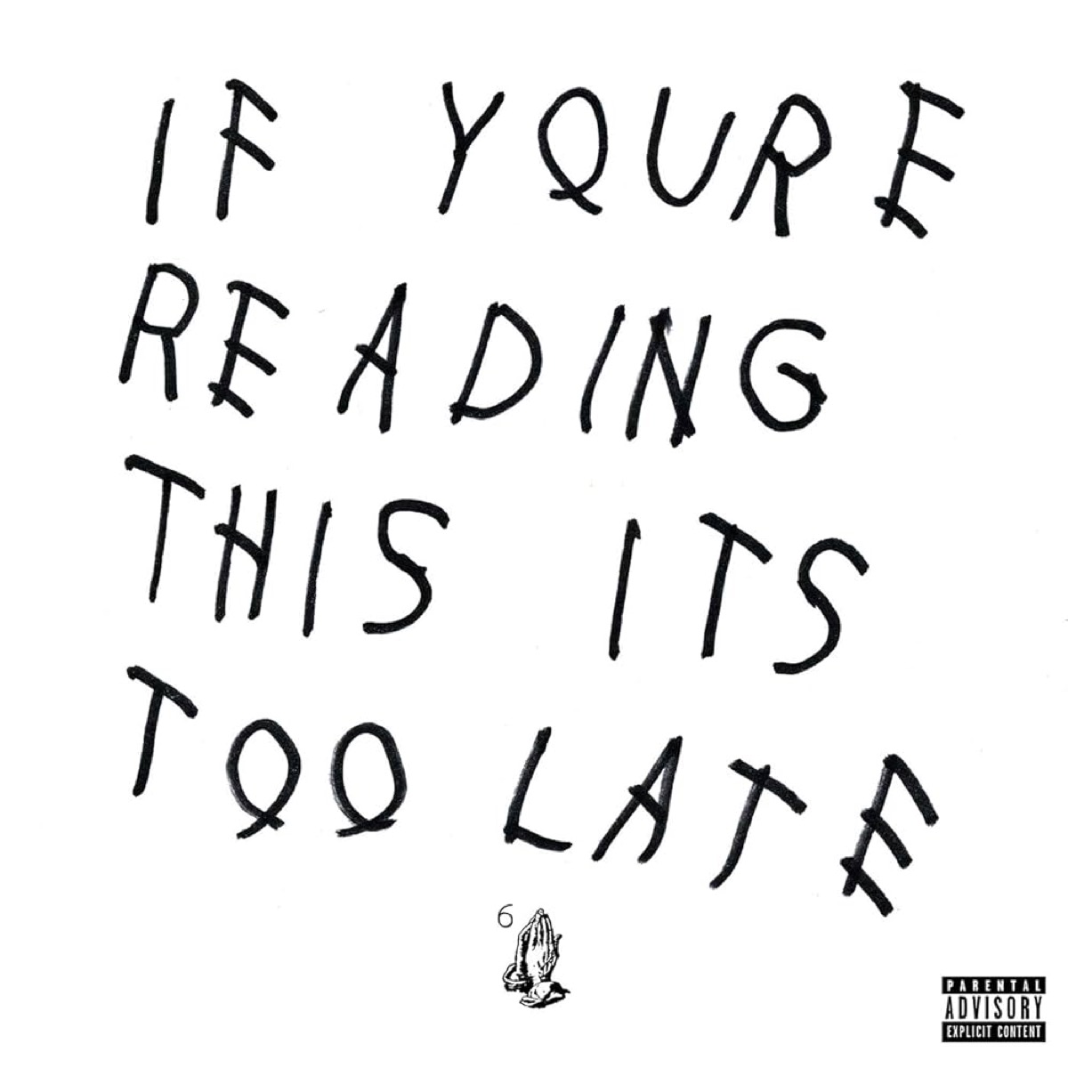 Drake’s fourth mixtape was a surprise release in early 2015, and you’d be forgiven for thinking that the folks in charge of designing the album art were just as surprised as the rapper’s fans. There’s nothing to the cover but the title, scrawled in curiously distinct handwriting over some little prayer hands. Despite (or perhaps because of) the seemingly slapdash minimalism of If You’re Reading This It’s Too Late ’s cover, it became an iconic bit of album art. The font, believed to be Drake’s handwriting, also became a meme .